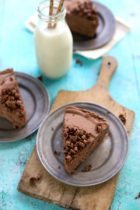 Layers of flourless chocolate cake, nutella mousse, nutella buttercream, chocolate ganache, and a ferrero rocher cherry on top.